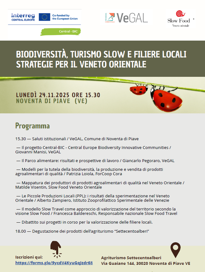 12.11.2025 – 12:53 – Noventa di Piave si prepara ad ospitare un importante evento dedicato alla biodiversità, al turismo slow e alle filiere locali, nell’ambito del progetto europeo Central-BIC. L’appuntamento si terrà lunedì 24 novembre 2025 presso l’agriturismo “Settecentoalberi”, con inizio alle 15:30, e si propone come un momento di confronto, approfondimento e promozione di strategie sostenibili per il territorio.